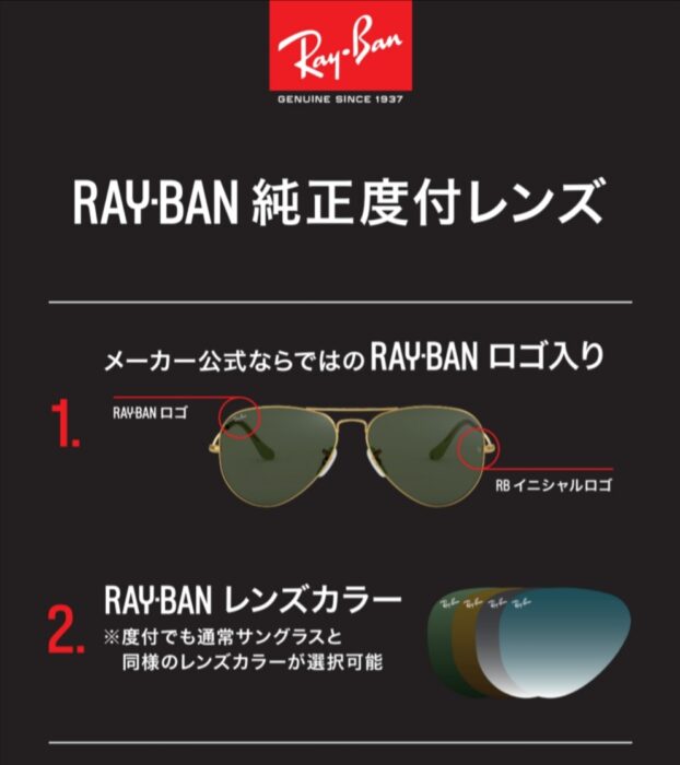 帯広市でRay-Ban純正度付きレンズの取扱いを行っております。